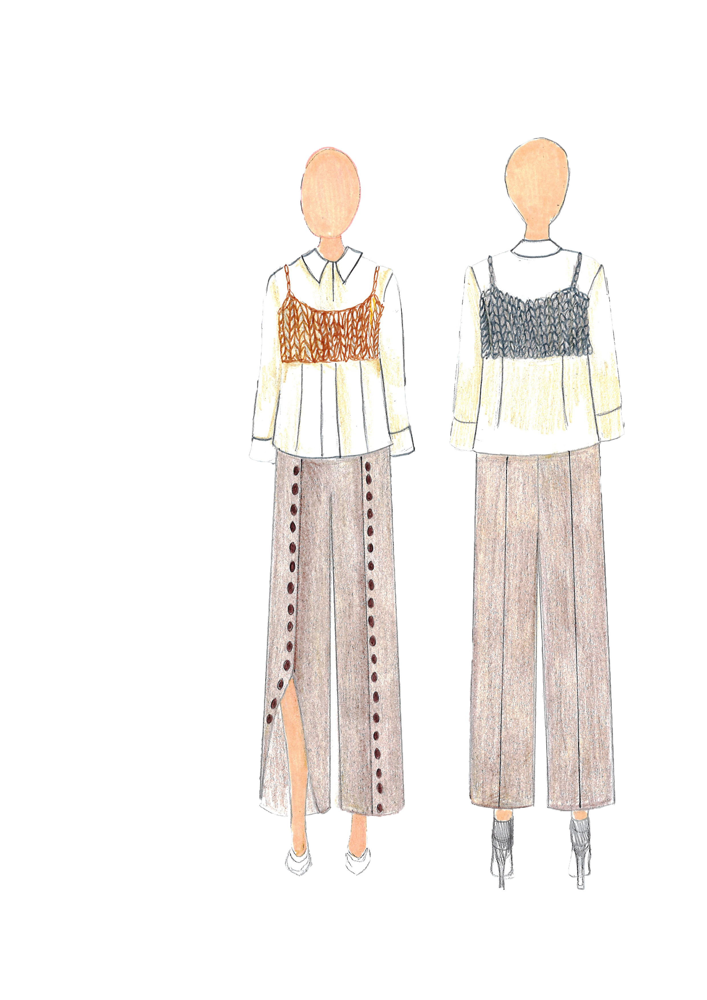 In 2023 heb ik een examencollectie gemaakt. Door heel mijn opleiding heen heb ik veel meekregen over hoe vervuilend de textielindustrie is voor onze planeet. Toen we in het laatste jaar een zelfstandige collectie mochten maken wist ik gelijk waar dit over moest gaan. Duurzaamheid; dat is de rode draad die deze collectie met zich draagt. Vanaf de schetsen tot aan de stof keuze, overal is nagedacht om de collectie zo duurzaam mogelijk te maken. Er is nauw gekeken naar het collectiebeeld, om de outfits zo te ontwerpen dat ze op meerdere manieren te dragen zijn. Ik heb ook bij de stofkeuze erg gelet op duurzaamheid. Zo is geen enkele stof van de voren gekleurd of gebleekt. De outfits zijn zo ontworpen dat de hele collectie door te dragen valt, andere combinaties zijn mogelijk.